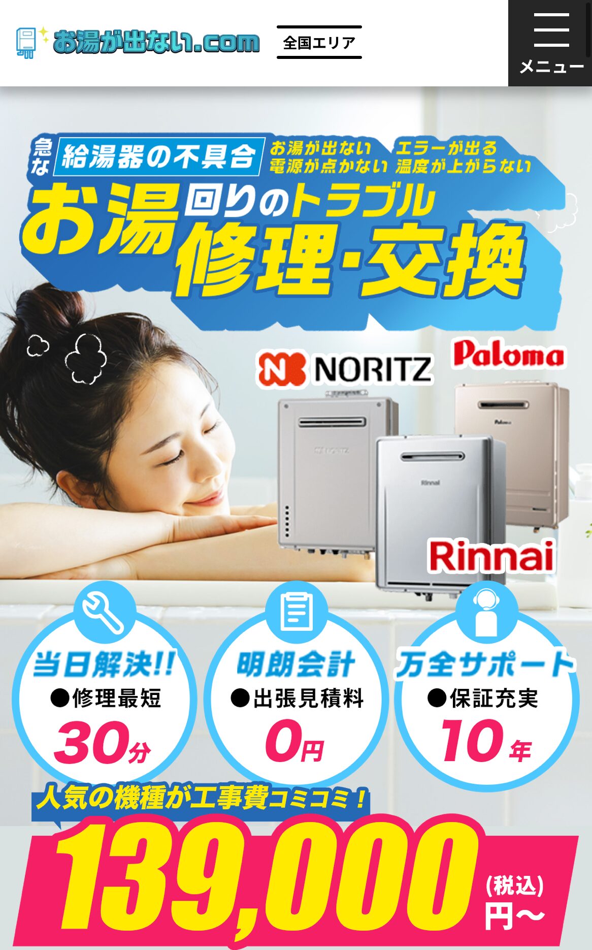 お湯が出ない.comは、電気工事士在籍の給湯器・電気温水器の交換・修理専門会社。