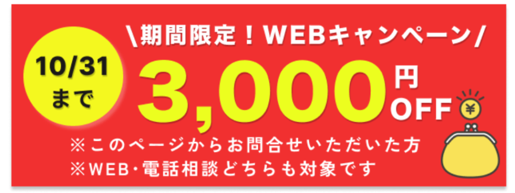 今なら、WEBフォームからのご成約で3,000円OFFになるキャンペーン実施中!
