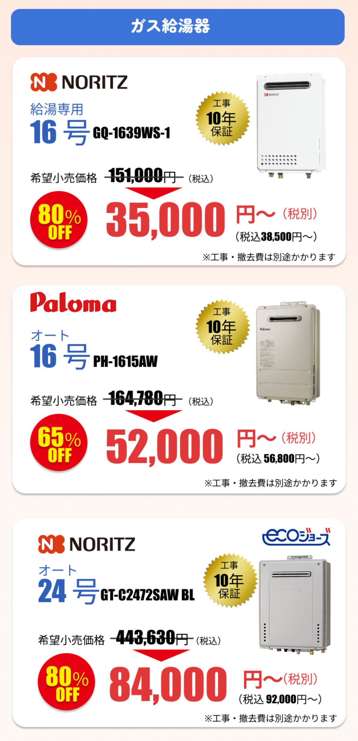 街角給湯相談所の売れ筋商品はこちら↓↓↓